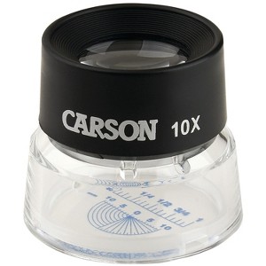 The LumiLoupe 10x Magnifier from CARSON is ideal for close-up examination of objects. Its transparent acrylic base allows ambient light to illuminate the subject for bright, clear viewing. The snap-on reticle lets you make accurate measurements in both millimeters and inches.