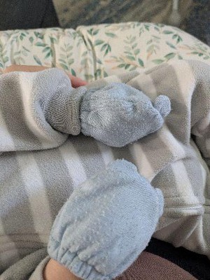 Leaving this in case there are other sleep deprived parents out there (haha). Since one of these has bear ears—and since I apparently can’t read ;)—I just wanted to say these are NOT hats, but mittens. Not sure what a mitten would have ears though. ;) Never used, but gave 4 stars because these came up when I searched “baby hat.” Also, I wish the photos would’ve included the full pair of mittens, or a photo of the product in use. Again, totally my bad for not reading the title, but some additional context clues and updated search terms couldn’t hurt. ;)