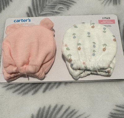 Keep those tiny hands covered and cozy by adding the Just One You made by Carter's mittens to their wardrobe. This two pack comes with two adorable pairs. One has a bear with plush ears and the other pair with a fun flower print. Thanks to the elastic cuffs these mittens are sure to stay snug on tiny hands helping to keep them warm and covered, while preventing scratching. These make for the perfect addition to any outfit as well as a great gift!
