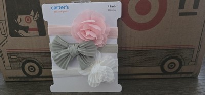 Accessorize your sweet little girl with this adorable 4 pack of head wraps from Just One You made by Carter's. This assorted pack features bows, and chiffon flowers. With 4 color options, including pink, green, white, and brown, these easily mix and match with any outfit for your little one for any occasion.