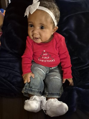 Baby is ready for holiday fun in this Carter's Just One You 2-pack holiday bodysuit set! One bodysuit lets the world know it's "my first Christmas,” while the other Santa covered bodysuit makes the perfect back-up when the inevitable mess happens. Both of these long-sleeve holiday bodysuits feature overlap shoulders for easy while the soft long sleeves keep baby warm and cozy during the cold season. Pair these ribbed bodysuit with any pants or leggings to complete your little one's holiday style.