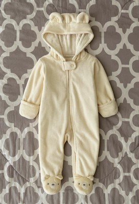 Chilly days ahead? Embrace the layers with this hooded faux shearling 1-piece pram for baby from Carter’s Just One You. This warm 1-piece jumpsuit is the perfect coverall for baby featuring a full-length zipper and foldover mittens to keep them warm! The little animal ears on the hood make this 1-piece for baby even more adorable!