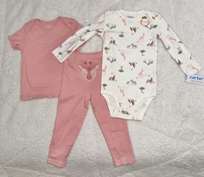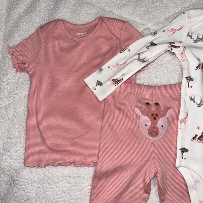 Carter's Just One You® Baby Girls' 3pc Striped Giraffe Bodysuit Set - Pink