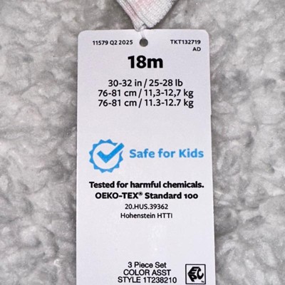 This 3-piece set for infants is Standard 100 by OEKO-TEX, so it's certified clean for your little one.