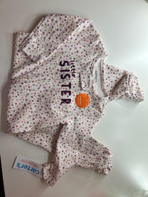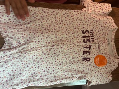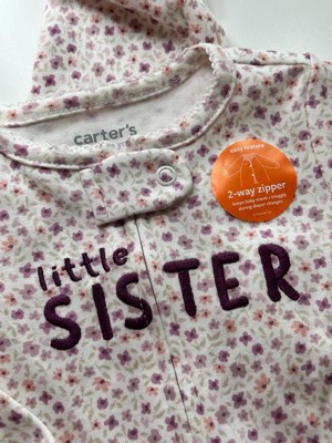 [This review was collected as part of a promotion.] This Carter's Sleep N' Play is adorable! It is a pretty floral print and says "Little Sister". It is made of good quality fabric. Soft and cozy, perfect for babies! I love the zippered pajamas much better than the snap up ones!! Carter's are true to size on these!