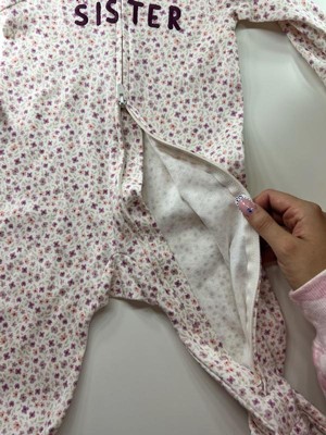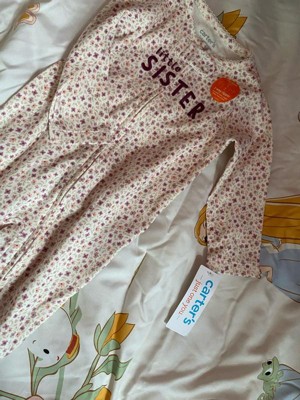 [This review was collected as part of a promotion.] This Carter's Sleep N' Play is adorable! It is a pretty floral print and says "Little Sister". It is made of good quality fabric. Soft and cozy, perfect for babies! I love the zippered pajamas much better than the snap up ones!! Carter's are true to size on these!