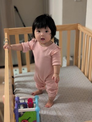 [This review was collected as part of a promotion.] I absolutely love this pink onesie! The material is soft and cozy, with a nice waffle texture that feels gentle on baby’s skin. The ruffle sleeves add the cutest touch! The snaps on the legs make diaper changes easy, and fits true to size! Highly recommend!