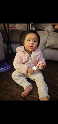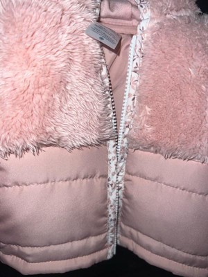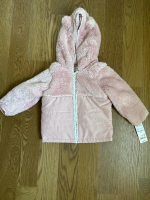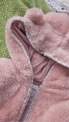 [This review was collected as part of a promotion.] This Carter's girl's pink jacket is so cute. The fuzzy, soft fleece is cuddly and warm. The flower print detail on the zipper is really gorgeous. The little fleece ears on top of the hood will delight your little one. This jacket is practical and adorable. It really is pretty and stylish while being easy to put on and take off. The fit is just right.