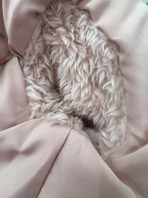Love this jacket! Pretty pastel pink color, looks a little on the small side for 6 months size. Also it is lined on the inside but not with sherpa.