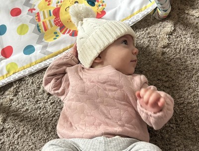 So stinkin cute and softer than I thought. Got the 6m size for my 4 month old. She’s smaller than average and it fits her great but has room to grow.