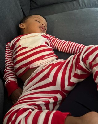 [This review was collected as part of a promotion.] In the winter we are all about pajamas morning, noon, and night. I’d rather my bay be cozy and warm than anything else So I was super excited to get this set. The design on it is adorable and I had my baby wear it for his pictures with Santa (even though as you can see, he was less than enthused) I like that it’s a two piece vs a footie because it makes diaper changes quick and easy and it is so so soft! Carters always holds up well after washing numerous times vs other brands i’ve tried that shrink a lot.