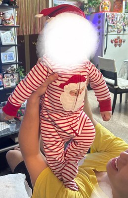 [This review was collected as part of a promotion.] This is an ADORABLE Christmas outfit for any baby. I love the 2-way zipper for easy diaper changes and the soft material. The 6 month size is perfect for my 4 month old. The matching hat is another plus. I can see this being a hit for this year’s christmas party.