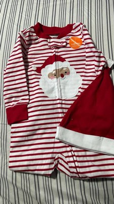 The holiday season is busy; make your life easier with this Carter's Just One You sleep and play for Christmas. This 2-piece sleep and play set features everything you love and expect from the classic style: full zip closures to make changes easy and plus an adorable Santa hat to complete baby’s look. Plus, this holiday sleep and play has the cutest candy cane stripes and Santa graphic on the chest.