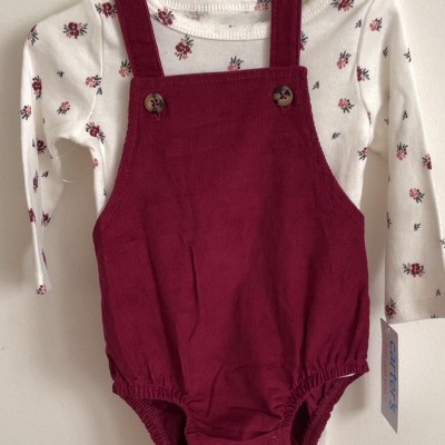 The season of gathering is here and so is baby girl’s fabulous look for the season! Carter's Just One You 2-piece romper and tights set is a beautiful addition to baby girl's wardrobe. This overall style romper is crafted from festive burgundy corduroy that pairs perfectly with her comfy knit tights and long sleeve floral bodysuit! With snaps at the legs, changing and dressing your little one is a breeze.