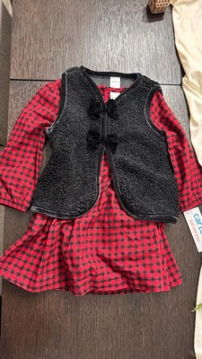 Carter's Just One You® Baby Girls' 3pc Holiday Buffalo Checkered Dress with Vest - Black - 1 of 4