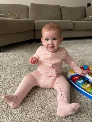 [This review was collected as part of a promotion.] The Carters Floral comfy sleeper is extra soft and stretchy, making it lightweight and breathable for my baby. I love the two way zipper. My only complaint would be the light pink color makes it easy to see stains. However the material does wash well.