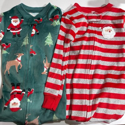Carter's Just One You® Toddler Boys' 2pk Snug Fit Christmas Striped Santa Long Sleeve Footed Pajama - Green/Red 12M