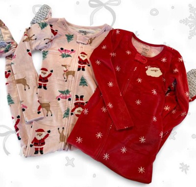 Carter's Just One You® Toddler Girls' 2pk Snug Fit Christmas Santa Stars Long Sleeve Footed Pajama - Red/Pink 12M