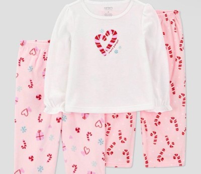 Carter's Just One You® Toddler Girls' 3pc Christmas Candy Cane Long Sleeve Poly Fleece Pajama Set - Pink 12M