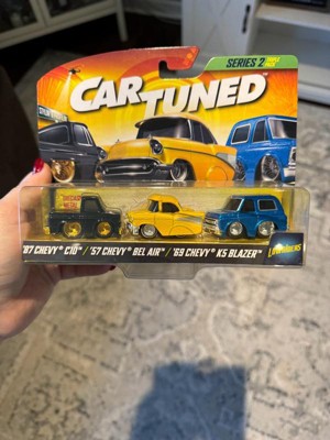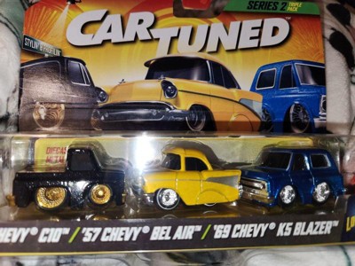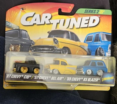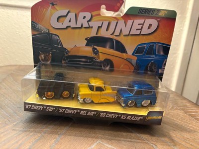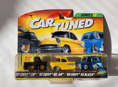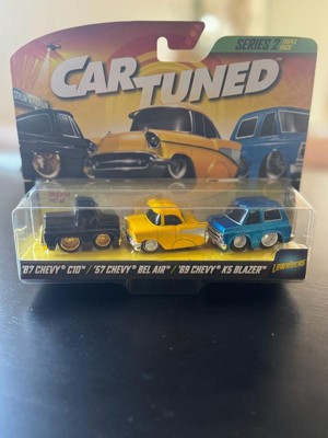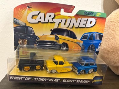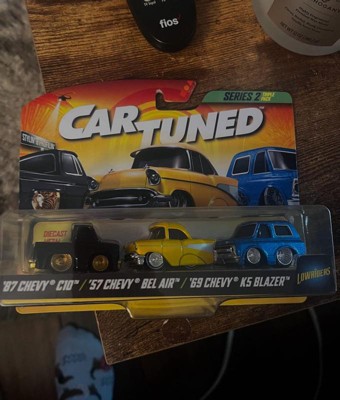 [This review was collected as part of a promotion.] The Car Tuned Series 2 Triple Pack is a must-have for diecast collectors and lowrider enthusiasts—I absolutely love it! Featuring an ’87 Chevy C10, ’57 Chevy Bel Air, and ’69 Chevy K5 Blazer, each vehicle showcases custom paint, chrome details, and a sleek lowered stance. The black C10 truck stands out with gold wheels and “DIECAST METAL” branding, while the yellow Bel Air and blue K5 Blazer bring a bold, classic lowrider aesthetic. The vibrant packaging enhances the collectible appeal, making this set perfect for display or any diecast collection.