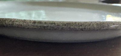I loved these based on the online photo. In person the plates all have 6 weird blobs on them all in the same spot. I like imperfect glazes, but this is just weird looking.