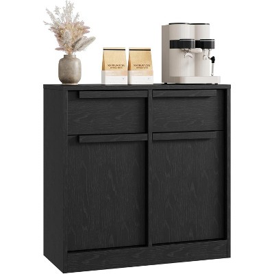 Carved Flower Door Large Storage Cabinet with Metal Handle, Ample Storage for Living Room, Kitchen, or Entryway,Black-- Frevyn