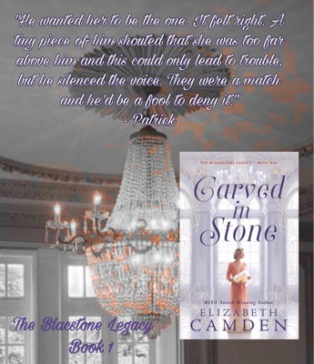 Set in 1900, Carved in Stone is full of interesting characters and contrasts the lives of working class Irish like lawyer Patrick O'Neill and the Blackstones, a family of wealthy investment bankers. A young widow, Gwen Blackstone Kellerman has no interest in banking, preferring to teach a class of botany at Blackstone College, which was founded by her late father. When she is sent by her grandfather and uncle to Patrick O'Neill in hopes he will persuade his client to stop publication of a book that would reflect very negatively on the Blackstones, it is the beginning of their unusual friendship. There is an interesting mystery that has plenty of surprises. One of the characters went from having a hard scrabble life to one of luxury and the difficulties of that were explored. I really enjoyed Carved in Stone and am already looking forward to book two which I am happy will feature Natalia and the Siberan Count Sokolov. Elizabeth Camden's books are always well written and full of interesting historical details that enhance the story. I received a complementary copy of the book. All thoughts are my own.