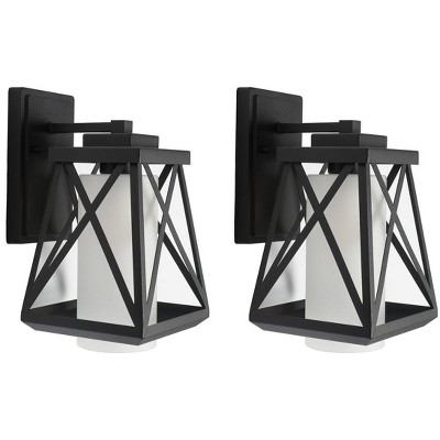 Illuminate your outdoor space with the Carwen black outdoor wall sconce set of two. Each sconce, measuring 8.46 inches, beautifully blends form and function, offering a sleek addition to any exterior. The combination of metal and glass creates a striking silhouette, enhancing your walls with its elegant design. Perfect for patios, porches, or garden walls, these sconces deliver both style and practicality. The durable metal frame ensures these fixtures will withstand the elements, while the glass enclosure provides a warm and inviting glow. Enhance your home's outdoor charm with the Carwen wall sconce set, a choice that effortlessly complements any decor and provides reliable lighting.