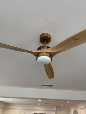 Find modern style and a nice, refreshing air-circulation with the Windspun indoor LED ceiling fan. This stylish design features a soft brass finish on the DC motor, and is paired with three natural white oak finish solid wood carved blades and an energy-efficient dimmable LED light kit to complete the design. Includes a full function five-speed hand held remote control for easy operation.