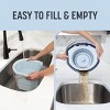 The Casabella Clean Water Spin Mop features two buckets that work together, allowing for separation of clean and dirty water, making it easier to fill with clean water in any sink and discard dirty when done, and for easy storage anywhere. It has an easy-to-use pedal spinner and spinning handle grip while also featuring a removable splash guard for cleaning. The built-in cleaning solution measuring cup helps get your ratio right to save on cleaning solution, and the visible max fill line allows up to 1.25 gallons. When carrying, the handles combine to form one with a comfortable grip making it easy to transport the mop around the home while cleaning, and our super absorbent microfiber provides a deep clean with just clean water.