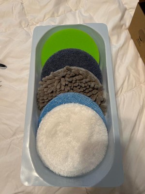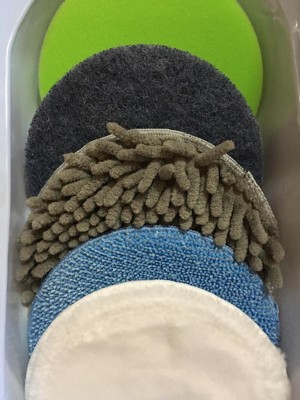 - USE & CARE: To attach base plate, aligning the plate with scrubber base and push down to lock into place. To remove, pull plate away from base. To attach pads to base plate, align pads to plate and press to secure. To remove, pull pads away from base. Sponge, chenille, and microfiber pads are machine washable. Wash separately with warm water on gentle cycle with mild detergent. Air Dry. Scrubber and buffing pad are hand washable. Wash with warm soapy water, rinse, and air dry.