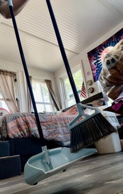 [This review was collected as part of a promotion.] It stands on its own together with the dustpan. I love that! I hurt my back years ago and hate sweeping because of the bending over with the dust pan. But, this one needs no bending over. I also noticed a much light line of dust that didn’t make it into the dustpan. If you’re used to the short handheld dust pan, then emptying it into a trash can can take some getting used to. But, it’s worth it! Got the dirt and dust and didn’t hurt my back!