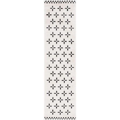 Our bohemian-style rug features a striking Ivory/Black color palette, creating a bold contrast that will complement and enhance your existing decor. The pattern, a harmonious mix of geometric shapes and cultural motifs, exudes a sense of adventure and spirited artistry.