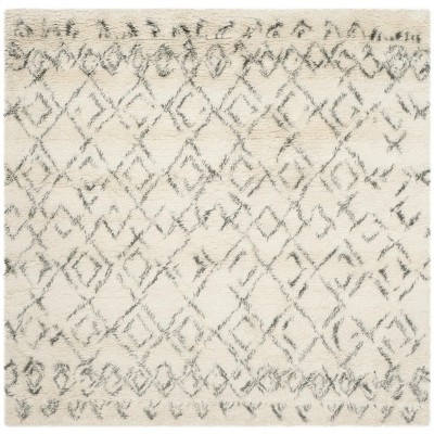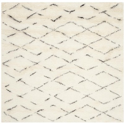 Casablanca Shag CSB851 Hand Tufted Indoor Area Rug - Ivory/Dark Brown - 8'x8' - Safavieh