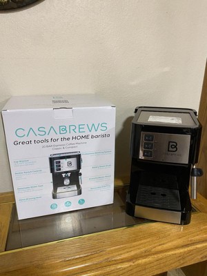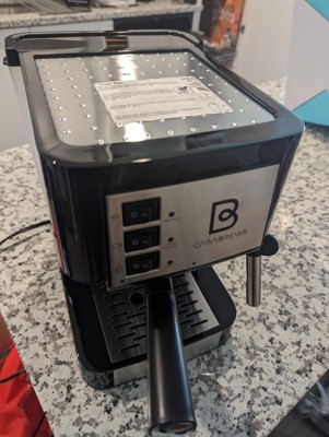 Casabrews Espresso Coffee Machine with Milk Frother Wand and Detachable Water Tank for Barista Use and Cafe Products, Black/Silver