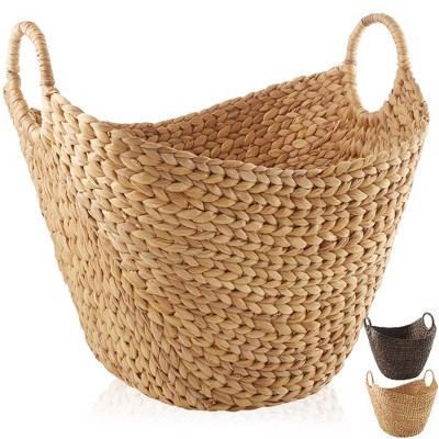 Casafield Set of 3 Water Hyacinth Boat Baskets with Handles - Espresso, Woven Storage Organizers for Blankets, Laundry, Bathroom, Bedroom, Living Room