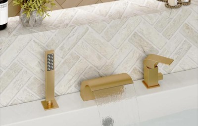 [This review was collected as part of a promotion.] I love how this tub faucet has a waterfall for the water coming out of the faucet & this has the added versatility of a handheld shower head as well.