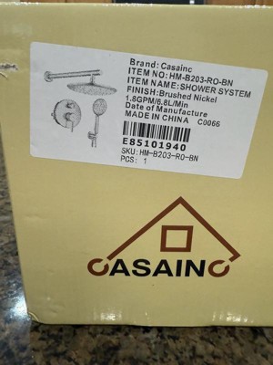 [This review was collected as part of a promotion.] This CASAINC shower system is what you need for a rain shower head and hand-held combo. The shower head rotates 360 degrees for that perfect angle. The brushed nickel finish is maintenance free and looks great for that new shower feel.