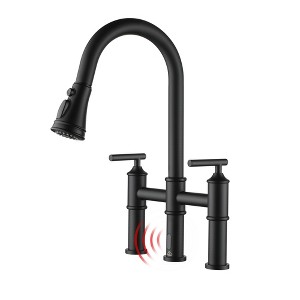 Add a sleek new look to your kitchen with CASAINC’s double-handle kitchen faucet with a Pull-Out sprayer. Choose between brushed nickel, matte black, or brushed gold to fit your kitchen’s aesthetic. This easy-to-install Pull-Out kitchen faucet is the perfect addition to any kitchen.