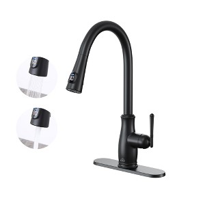 CASAINC Single Handle Pull Down Sprayer Kitchen Faucet with Intelligent Temperature Display in Matte Black