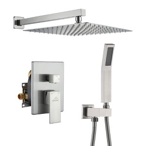 Product Name: CASAINC 12'' Wall Mounted Square Shower System with Handheld Sprayer, Brushed Nickel