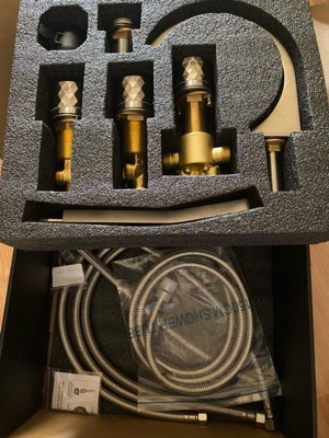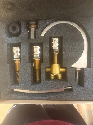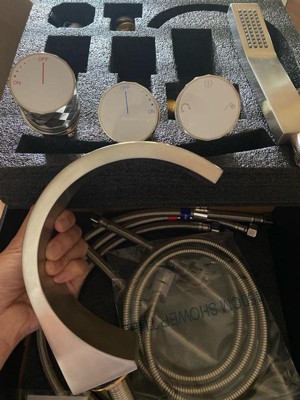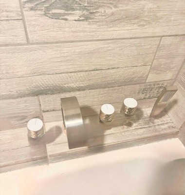 [This review was collected as part of a promotion.] I’m really pleased with the high-quality and design of this bathtub faucet set. We have a makeshift tile wall connected to our bathtub and decided to drill through that to mount it to our bathtub. It was way easier than expected and it looks amazing with the color of the tile behind it. I really love The small holes in the bottom of the faucet that expels the perfect amount of water. I also really love the handheld sprayer how comfortable it is in my hand and how the water sprays out of it. The hose is longer than I am used to which I really enjoy. The knobs are a beautiful design and make the bathtub really stand out. The directions were clear and this was delivered beautifully to me. It looks perfect in my home. I would highly recommend it.