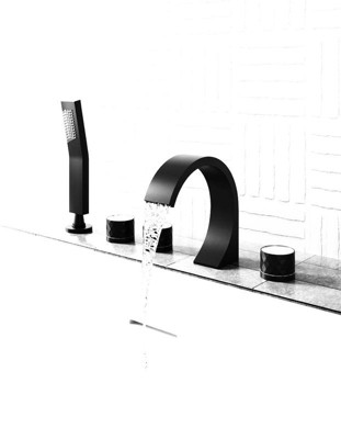 [This review was collected as part of a promotion.] Love this faucet! The matte black finish looks sleek and modern, and the waterfall flow is super relaxing. Installation was easy with the 5-hole setup. The handheld shower is a great bonus for cleaning the tub or rinsing the kids. Great quality, highly recommend!