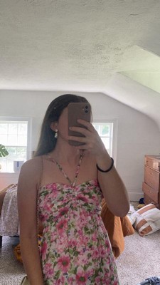 Did not think I would like the cut of the dress but I was pleasantly surprised. Fit brides request for bright summer formal florals and the top stayed in place with lots of dancing. Very flattering!