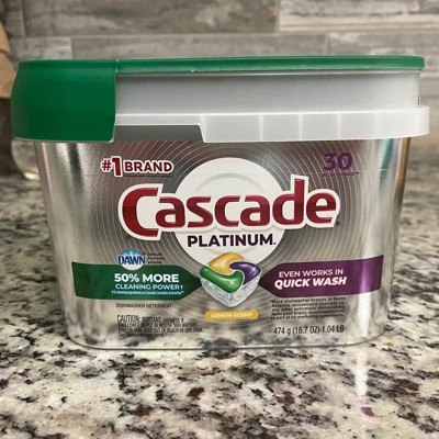 Our dishwasher (d/w) holds a large amount of (Cascade) liquid detergent and automatically dispenses the right quantity per washing load. Downside is that the liquid has left lots of “white residue” that I haven’t been able to remove. I recently tried another brand’s products to specifically “clean” the d/w. Nothing happened. So since I hadn’t refilled my liquid dispenser, I decided to try Cascade Platinum/Lemon pods while I figured out more d/w cleaning options. Since most d/w cleaning aids instruct using them w/o detergent. Well, after only one full wash cycle, not only were my dishes cleaned but the white residue from the liquid is also gone! Needless to say I’ll be stocking up on Cascade Platinum/Lemon pods to continue using this amazing product! Since I was trying the product, we only bought a 14-pod pouch. It would be nice for you to address better large packaging instead of the non-recycleable containers others have complained about.