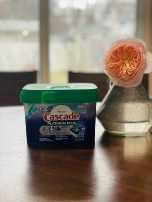 New and Improved Cascade Platinum Plus ActionPacs dishwasher detergent gives your dishes a breakthrough clean with up to 100% food residue removal. Loaded with 2X* the Dawn grease fighting power, and 2X* the tough food scrubbers, it has soaking, scrubbing, and rinsing built right in. You can skip the pre-rinse, skip the soak, skip the scrub, and dare to dish differently. Just scrape your dishes and load them into your dishwasher with Platinum Plus to get a superior, sparkling clean, saving you time, effort, and energy vs handwashing. Cascade Platinum Plus removes visible and invisible residue for gleaming glassware, dazzling dishes, and pristine pots and pans. *Cleaning ingredients vs. Cascade Complete ActionPacs.
