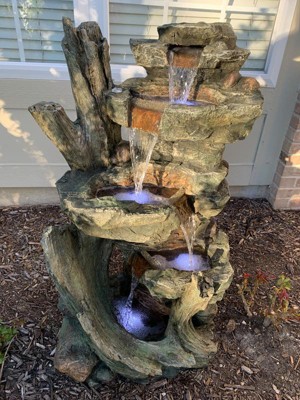 - DURABLE: Polyresin, stone powder, fiberglass and plastic construction is rust and weather-resistant to keep your outdoor fountain looking new overtime