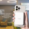 Goodbye tangled cables, hello easy charging! The FUĒL wireless charger is portable and has a high capacity 5,000 mAh wireless power bank that magnetically attaches to your MagSafe® compatible device or case. Complete with a slim profile, this charger is ideal for traveling and great for your on-the-go lifestyle.