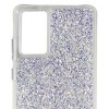 A: The case features a glitter stardust design that adds a stylish touch to your device.
