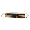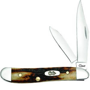 The Peanut knife, a cherished part of the Red Stag Family, is a favorite among Case enthusiasts for its unique blend of tradition and craftsmanship. This knife features a handle made from Genuine India Stag, achieved through an age-old process that gives each knife its own distinct character and texture. The Red Stag handle not only adds to the knife's visual appeal but also ensures a comfortable and secure grip. With its petite size, measuring 2.88 inches when closed and weighing just 1.2 ounces, the Peanut fits discretely and conveniently in a pocket. This folding knife is equipped with two full-length blades: a Clip blade, commonly used as a multi-purpose blade preferred for detail work, and a Pen blade, ideal for light work. Both blades are crafted from mirror-polished Tru-Sharp surgical stainless steel, known for its high-carbon composition that ensures prolonged edge retention, extraordinary blade strength, and corrosion resistance. Made in Bradford, PA, USA, using both domestic and imported materials, the Peanut comes packaged in a box. The Peanut in Red Stag is more than a knife; it's a compact and durable tool, embodying the artistry and quality of Case knives.